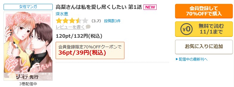 コミックシーモアでは、11/1まで1巻無料、全巻無料立ち読みが可能です。